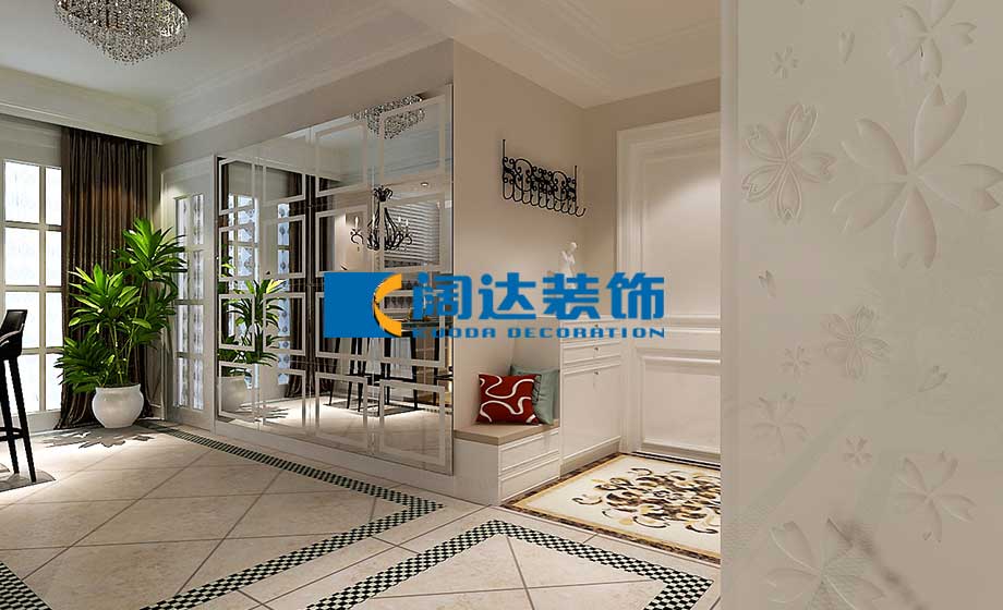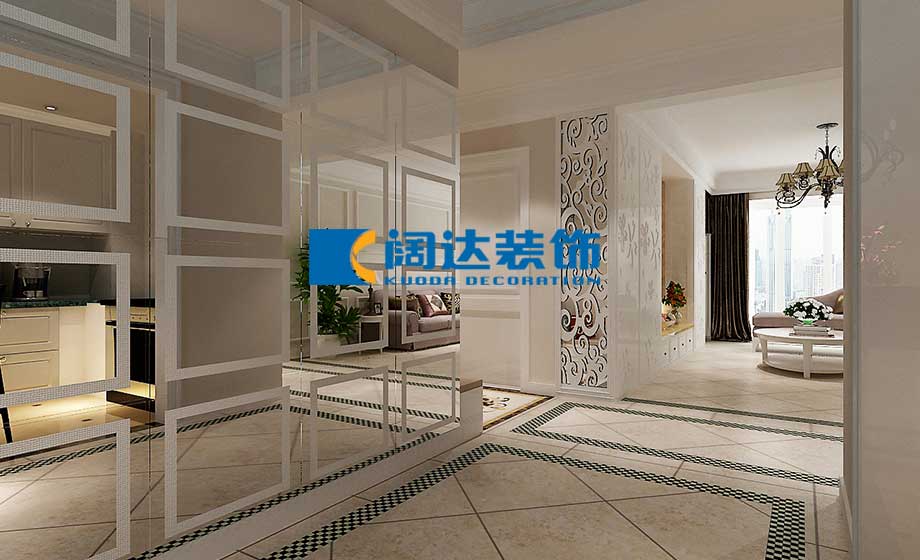 本案的主題思路圍繞簡奢、實用這兩個關鍵詞,目的是為了營造出富有簡奢氛圍的家居空間,可以讓人在這個空間里能夠感受到細致奢華的氛圍,并且簡歐風格在延續歐式奢華的同時舍棄了一些紛繁復雜的造型和光怪陸離的氣息,體現了年輕業主對精致生活的期許。客廳: 簡約之風為主,背景墻運用精致花格和石材的搭配組合,制造出簡奢的電視墻質感,并且充分利用客廳的原有跨度,從原有電視墻起做了一個隱藏式衣柜,再用表面的花格柜門做裝飾,這樣就同時兼顧了實用性和裝飾性。 臥室:簡潔的燈帶造型加之慵懶氣息的軟臥配飾,彰顯溫馨舒適的休憩氛圍。
