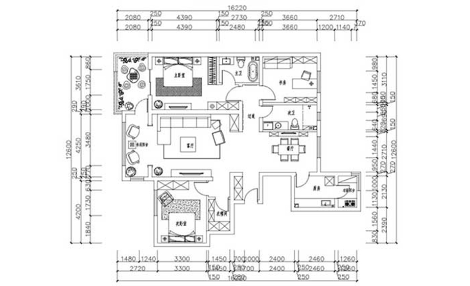廚房:廚房本身相對空間較小,所以將原有的陽臺的空間進行利用,規(guī)劃到廚房的使用功能上來,這樣增加廚房的操作區(qū)域。