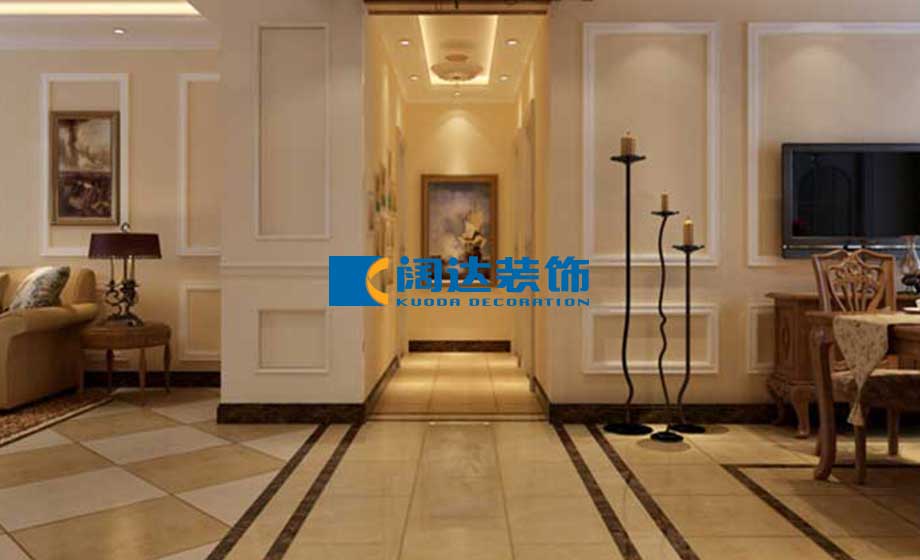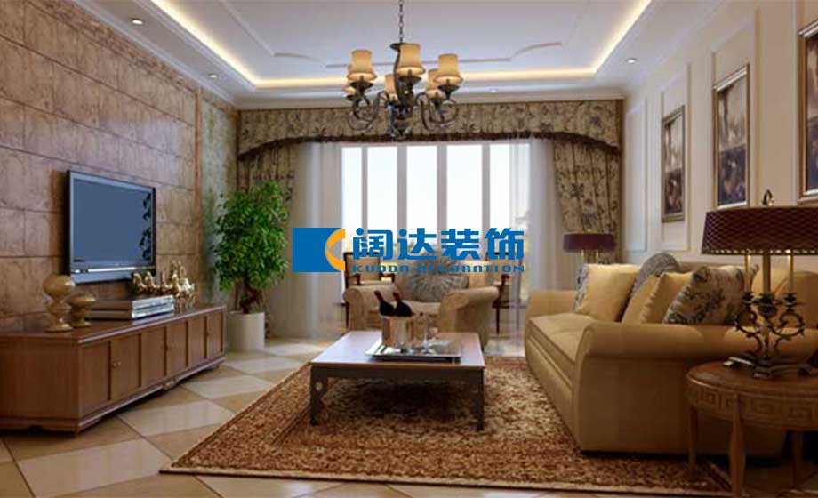 本案的風格為輕美式,裝修的特點是簡潔實用,色彩是明亮環(huán)保,是非常典型的“輕裝修、重裝飾”的風格。案例中的美式家具最迷人之處還在于造型、紋路、雕飾和色調(diào)細膩高貴。客廳:客廳的電視背景墻與沙發(fā)背景墻形成對比,不會顯得枯燥死板,顏色上輕重搭配,使整個空間更有層次感。