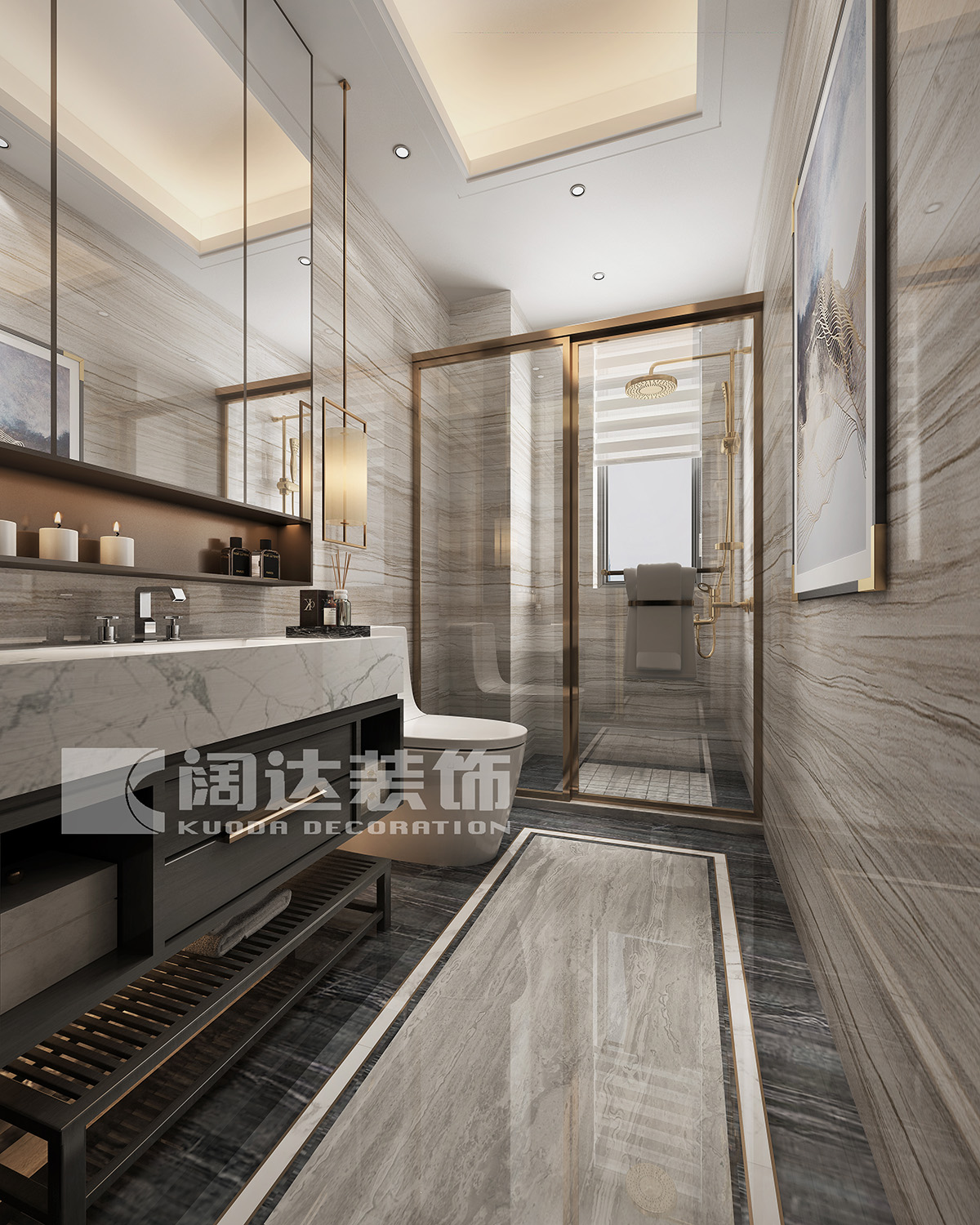 此案例沒有繁瑣的裝飾,局部色彩的點綴和金屬扣線的裝飾使中式風格更具有現代靈動的感覺。整體空間闡釋這生活的哲思,回歸內心的平靜,去尋找屬于自己的靈魂,讓設計蛻變為有溫度的生活藝術。