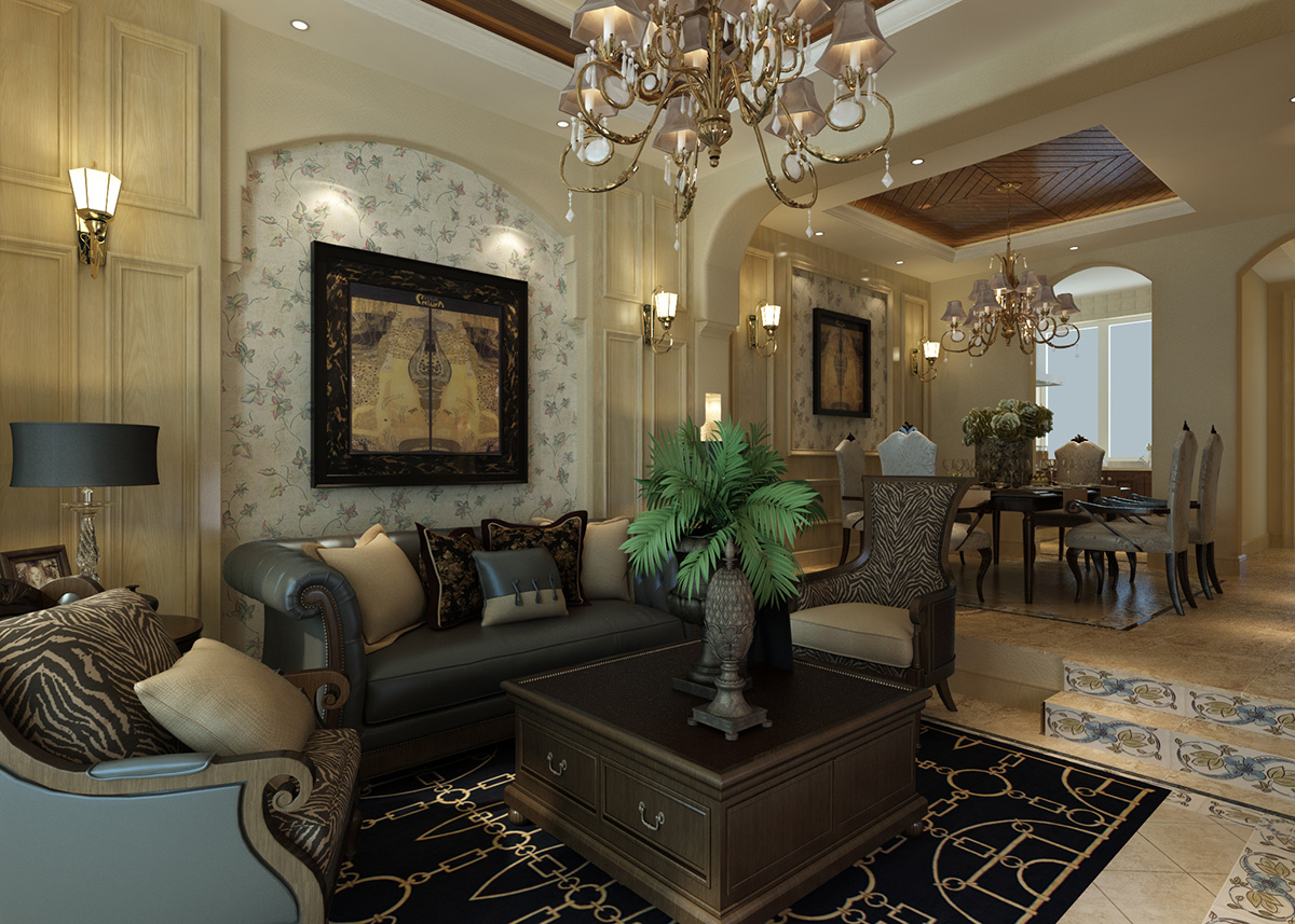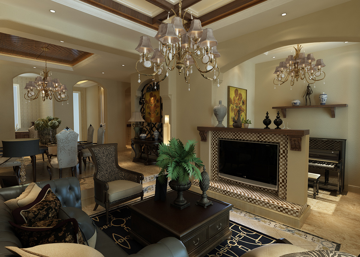 本案例287平聯排別墅采用美式風格,美國是一個崇尚自由的國家,這也造就了其自在、隨意的不羈生活方式,沒有太多
