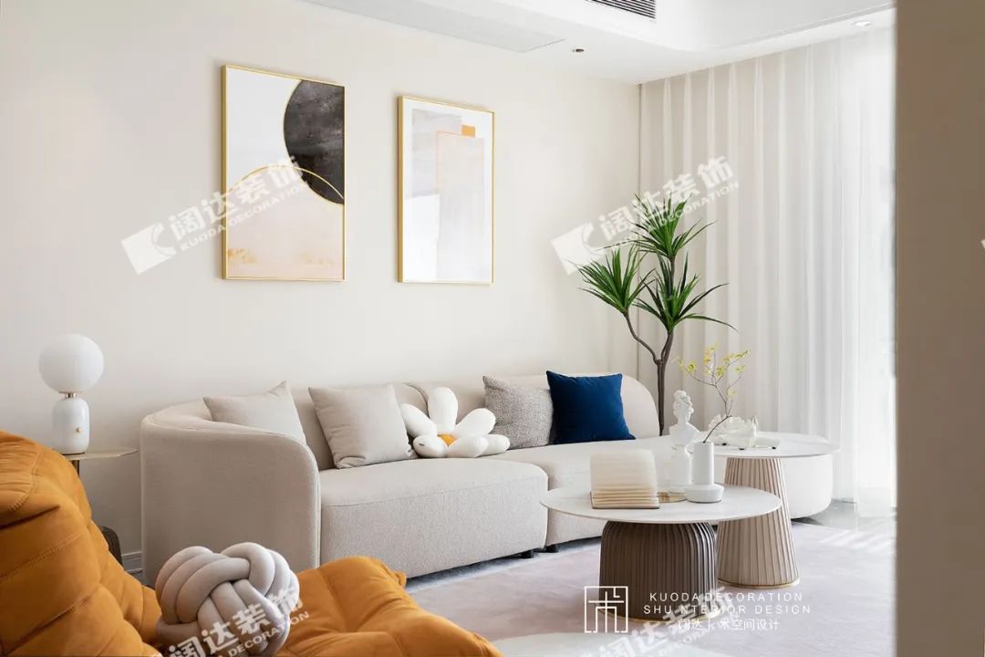本案充分體現(xiàn)了家庭居住空間的輕松與溫馨感。空間內(nèi)多處運(yùn)用弧線造型,同時(shí)搭配圓潤(rùn)的家具,營(yíng)造出安全、舒適、愉悅的家庭氛圍。