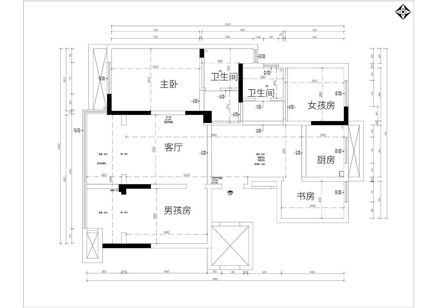 1、業主家有一兒一女,雖然有兩個衛生間,功能分配并不合理。