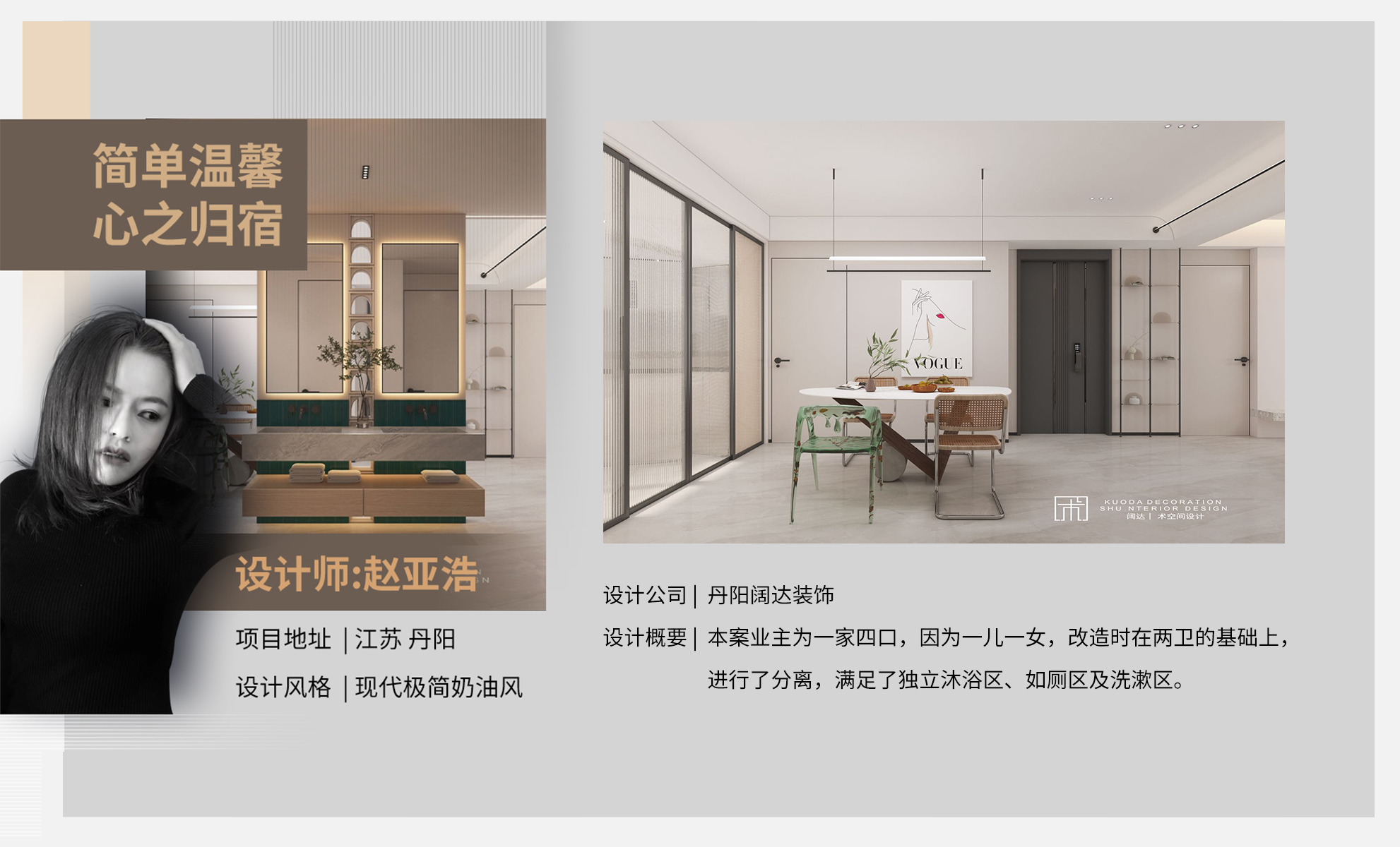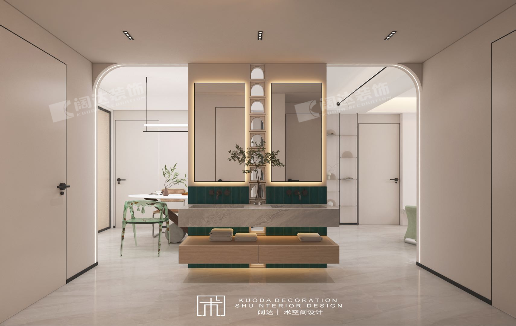 1、將兩個衛生間重新分配,改成三個獨立的功能區,滿足了一家四口淋浴、坐便、洗漱的正常使用